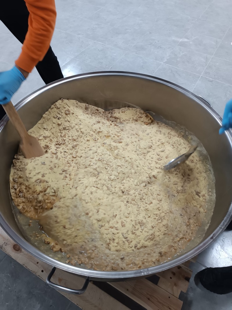 Yüksek kalite standartları gözetilerek seçilen cevizlerin hijyenik koşullarda işlenmesiyle üretilen, doğal ve besleyici bir gıda ürünüdür.Üretim sürecinin her aşamasında kalite kontrol ugulamaları titizlikle yürütlmekte olup, ürün içeriğinde katkı maddesi,koruyucu veya yapay aroma kullanılmamaktadır. Cezaevimizde ceviz ezmesi üretilmekte olup günlük ortalama 250-300 KG arası ceviz ezmesi üretmekteyiz.