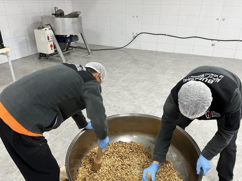 Ceza infaz kurumumuzda faaliyet gösteren şekerleme atölyesinde, hükümlülerin üretime katılımını sağlayarak mesleki beceri kazanmalarını, topluma yeniden uyum süreçlerinin güçlendirilmesini ve kamu yararına sürdürülebilir üretim yapılmasını amaçlamaktadır.Bu atölye sayesinde hükümlüler, şekerleme üretimi alanında teorik ve uygulamalı eğitimler almakta,disiplinli çalışma alışkanlığı kazanmakta ve üretim sürecinin bir parçası olma sorumluluğunu üstlenmektedir. Elde edilen ürünler öncelikle ceza infaz kurumlarının ihtiyaçlarının karşılanmasında kullanılmakta; fazlası ise kamu kurumlarına ve piyasalara sunularak ülke ekonomisine katkı sağlamaktadır.